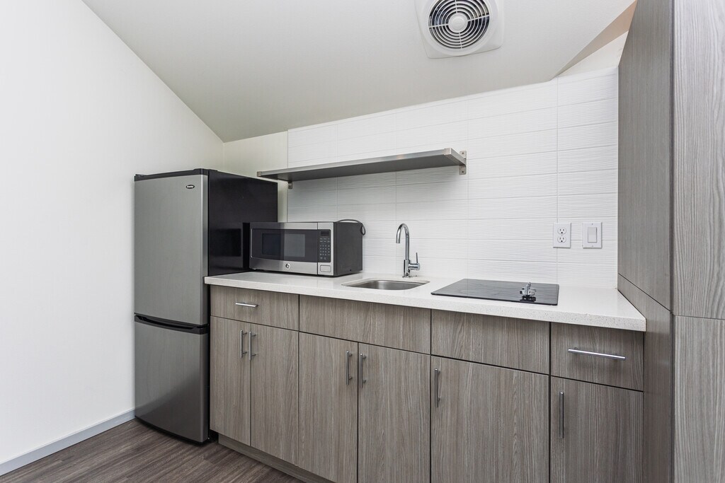 October 18, 2018There is so much to recommend the location. You can walk to coffee, restaurants, trader joe's QFC or Safeway. Studios are small-these are of course small-but they are sleek, well maintained and modern (just opened last year). Utilities are included in your rent-so only one bill to worry about each month. They also include wi-fi for your first lease term (takes the sting out of moving costs). Neighbors are nice, quiet great walkable neighborhood very close to the bridge if you want to be downtown. ...There is lots of space in your kitchen and bath to store your stuff-great cabinet space. Closet space is okay for a studio and bathroom is pretty good sized for a studio. There are nooks that easily have space for a full or queen sized bed and space for bookcases plus table and chairs-didn't feel like stuff had to be crowded in. Windows are well placed so the room is bright. Nice lounge in lobby, with TV for while you do laundry...bike storage-secured with a pin code and INSIDE is a nice touch. Laundry is also inside downstarirs-and machines can be operated with an app or cash.Read MoreReview from Apartments.com
