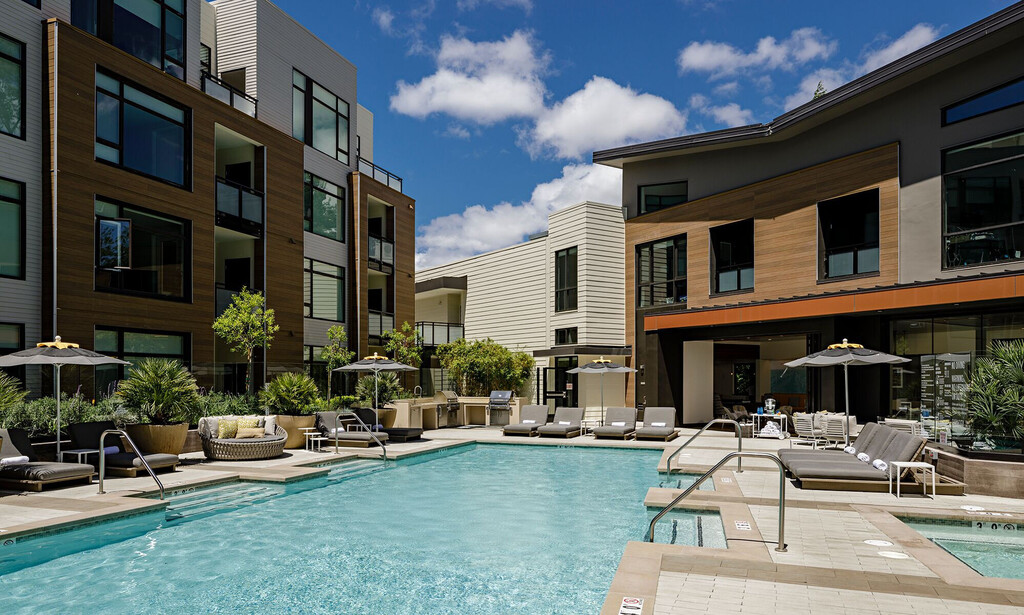 The modern aesthetics and tranquil landscape of the Montrose Apartments might be what catches your eye at first, but once you poke around a little, you'll find that making life easier is really what we're all about. Around here, all roads lead back to easy. Imagine you're taking in another glorious sunset from the rooftop terrace after getting in some sets in the strength studio, and then cooling off in the pool. Maybe later you'll stroll down the street to put that Walk Score of 80 to the test in search of the perfect Dragon Roll. Now imagine effortlessly hopping on the VTA, the 85,101 or 237 freeways to get wherever you want to go. Well, if you lived here you wouldn't have to imagine any of this, you could really do it, any time you want.