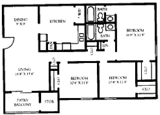 Apartment Model: 3 Bed 2 Bath3 Bedroom, 2 Bath, 1288 sq ftAvailable Now![]()
