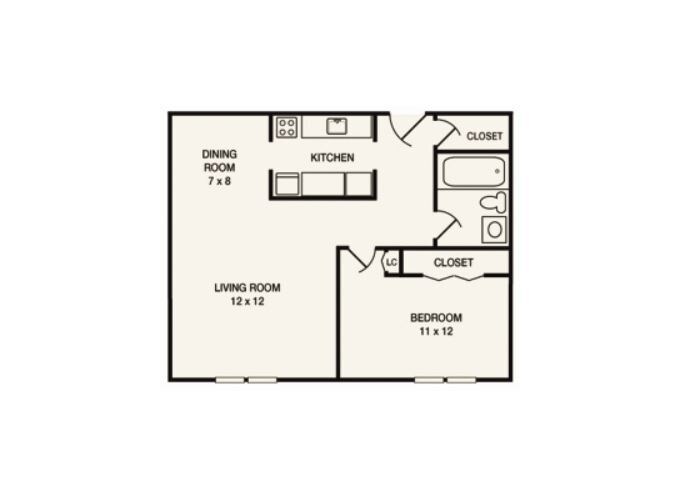 Apartment Model: BFrom $8651 Bedroom, 1 Bath, 580-735 sq ftUnavailable![]()