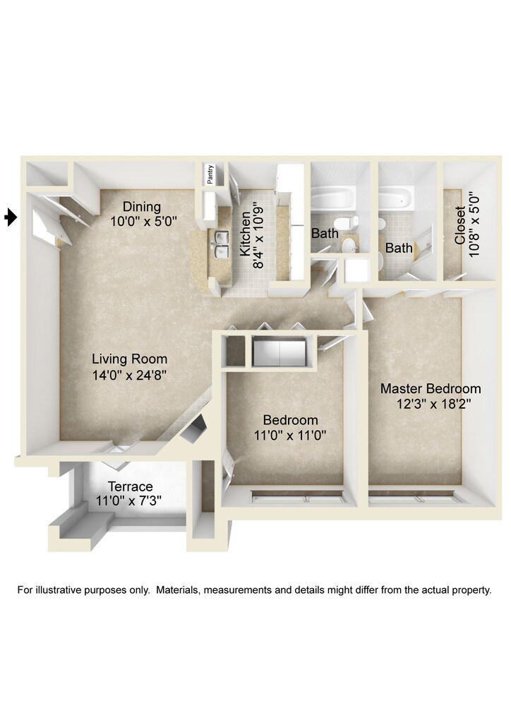 2 Beds, 2 baths - Floorplan 2