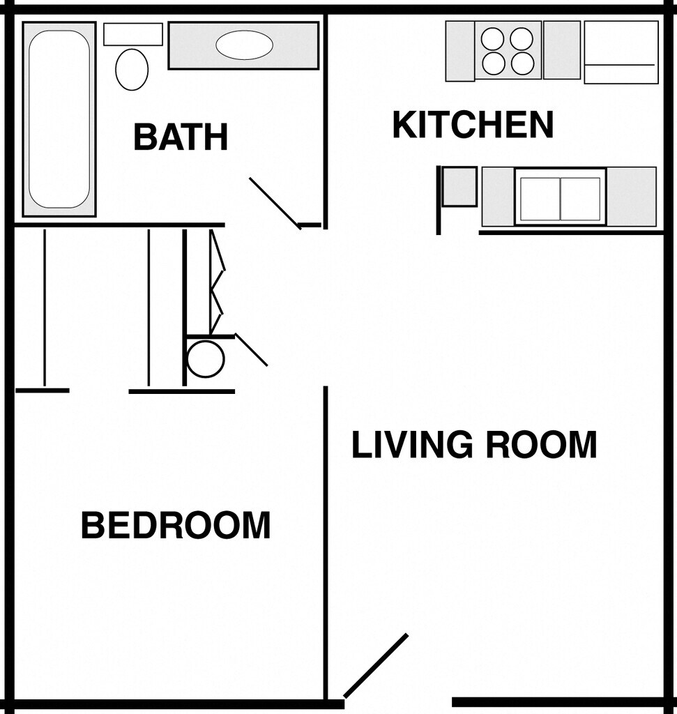 1 bedroom, 1 bath - Floorplan 1 2 Bedrooms