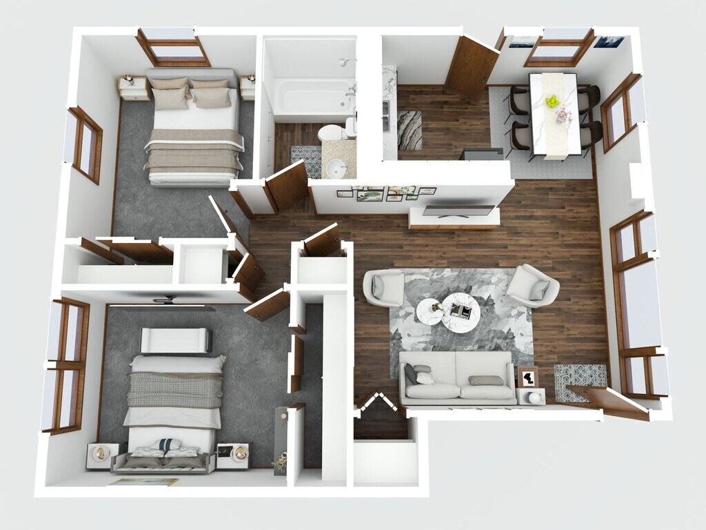 2 Bed 1 Bath Lower - Floorplan 9 Apartment Unit: 202-01Apartment Model: 2 Bed 1 Bath Lower$1,0492 Bedroom, 1 Bath, 869 sq ftAvailable Now