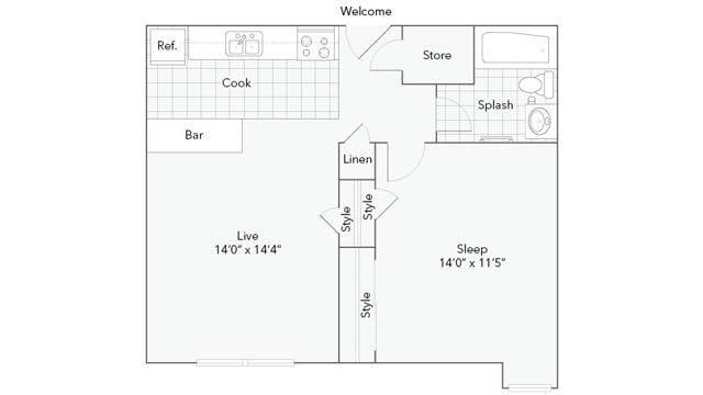 1 Bed, 1 Bath, 600 sq ftAvailable NowModel Gallery