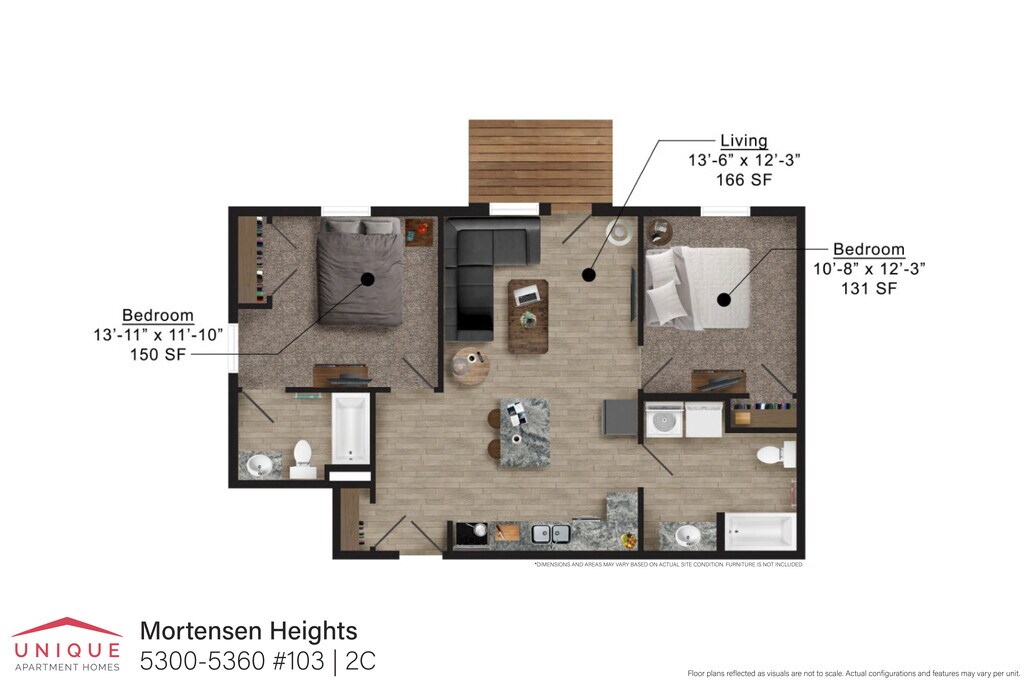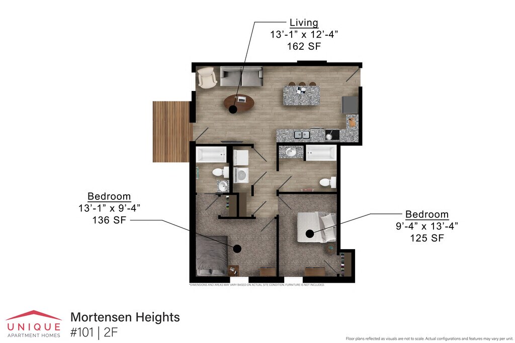 Apartment Model: 2F$1,2002 Bedroom, 2 Bath, 836 sq ftAvailable August 1, 2026![]()