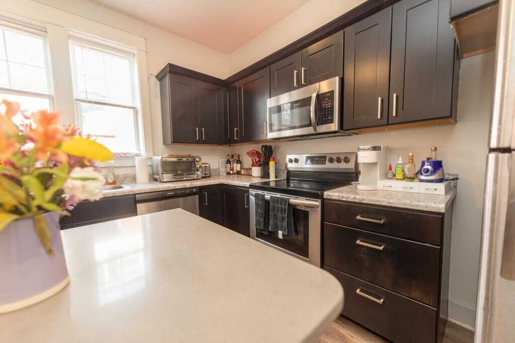 Located on the corner of 7th and Morton Conveniently located across from Bloomington Bagel Company and Bloomingfoods On the B-Line Trail Less than one block from downtown shops and restaurants 4 bed 2.5 bath townhome Professionally designed High end stainless steel appliances Luxury vinyl floors W/D, D/W, A/C Internet, water, and trash removal included