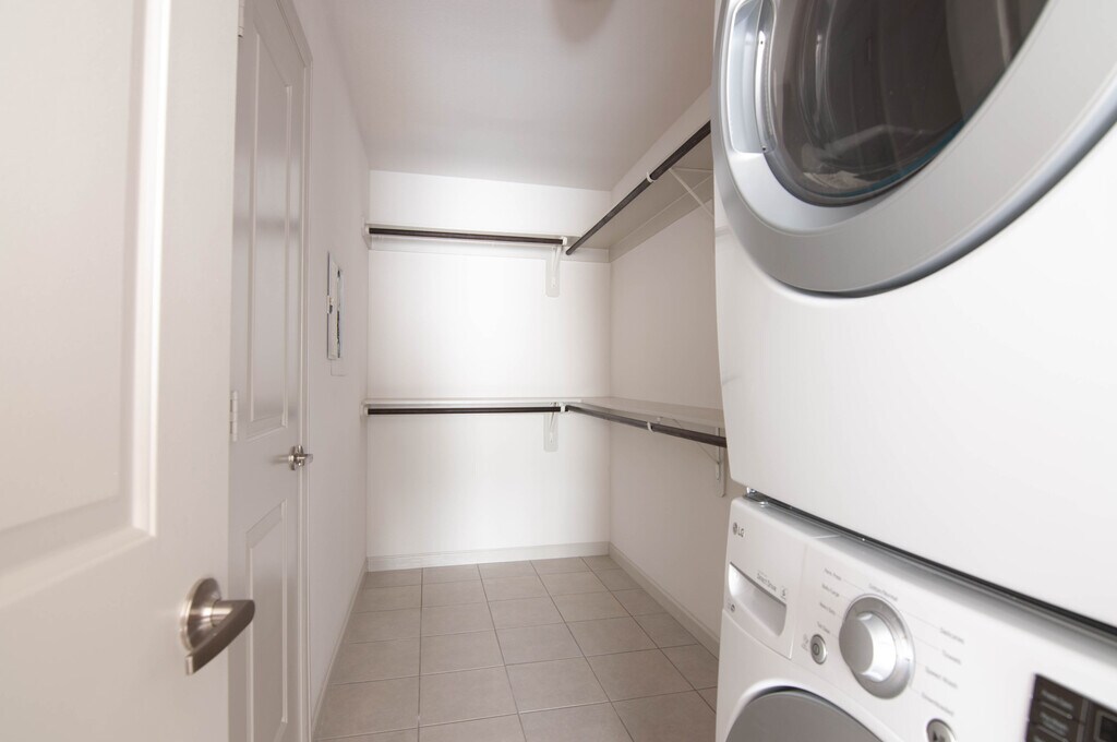 Large One bedroom One Bathroom with extra large walk in closet / laundry room with full size high efficiency front loading washer & dryer ($65) hardwood floors, stainless steel appliances and granite in the kitchen and bath. TV nook, built in shelving and large sliding glass door to private patio.