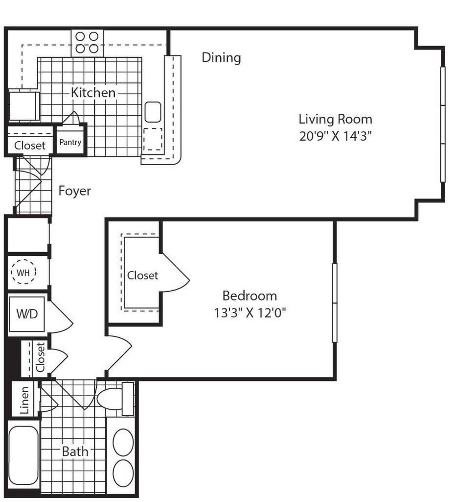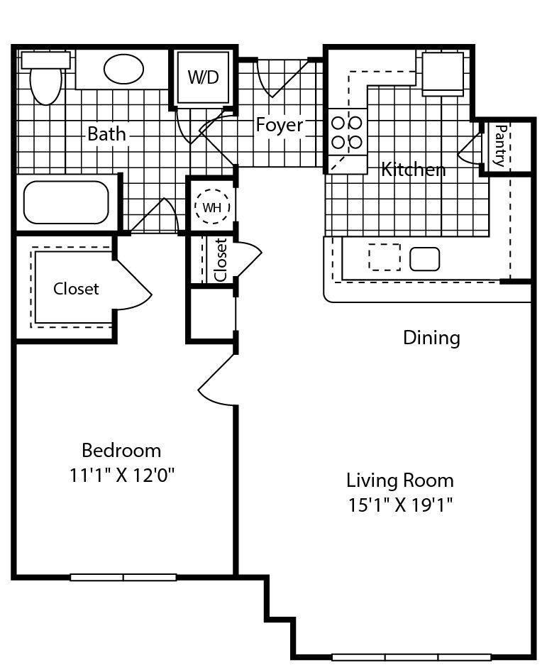 Apartment Model: A6From $1,7601 Bedroom, 1 Bath, 802 sq ftAvailable NowFloor plans are artist's rendering. All dimensions are approximate. Actual product and specifications may vary in dimension or detail. Not all features are available in every rental home. Prices and availability are subject to change. Base rent is based on monthly frequency. Additional fees may apply, such as but not limited to package delivery, trash, water, amenities, etc. Deposits vary. Please see a representative for details.