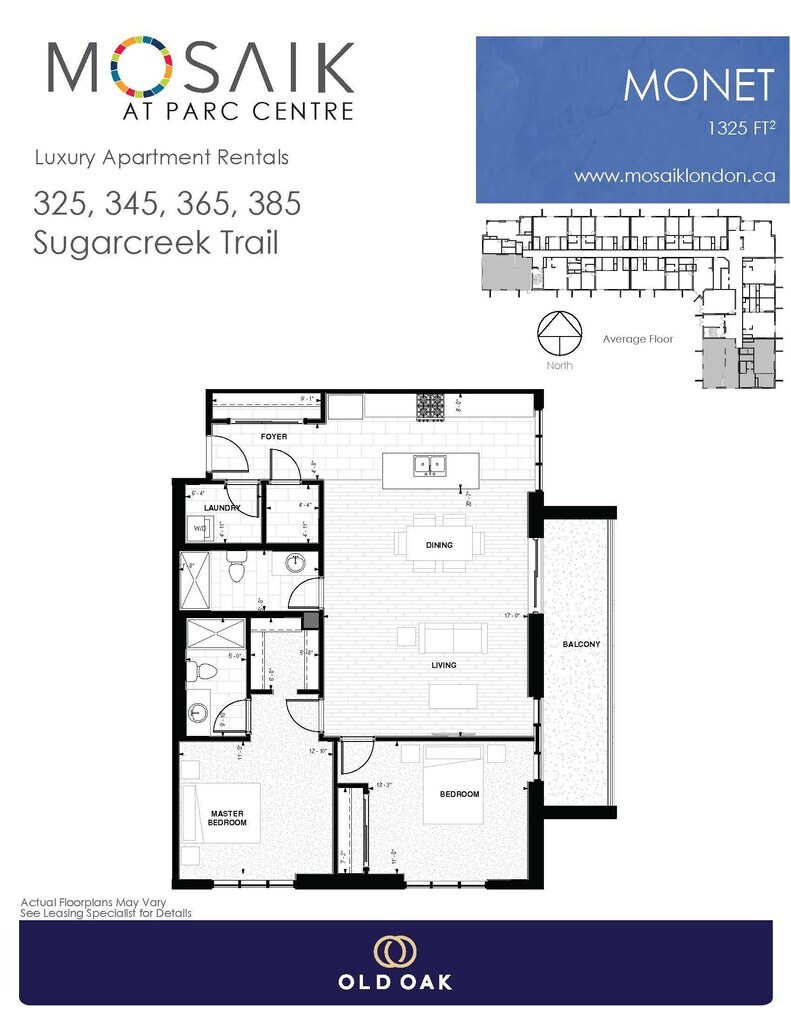 Monet - Floorplan 1 Apartment Unit: 0416Apartment Model: Monet$2,4102 Bedroom, 2 Bath, 1325 sq ftAvailable May 8, 2026Carr