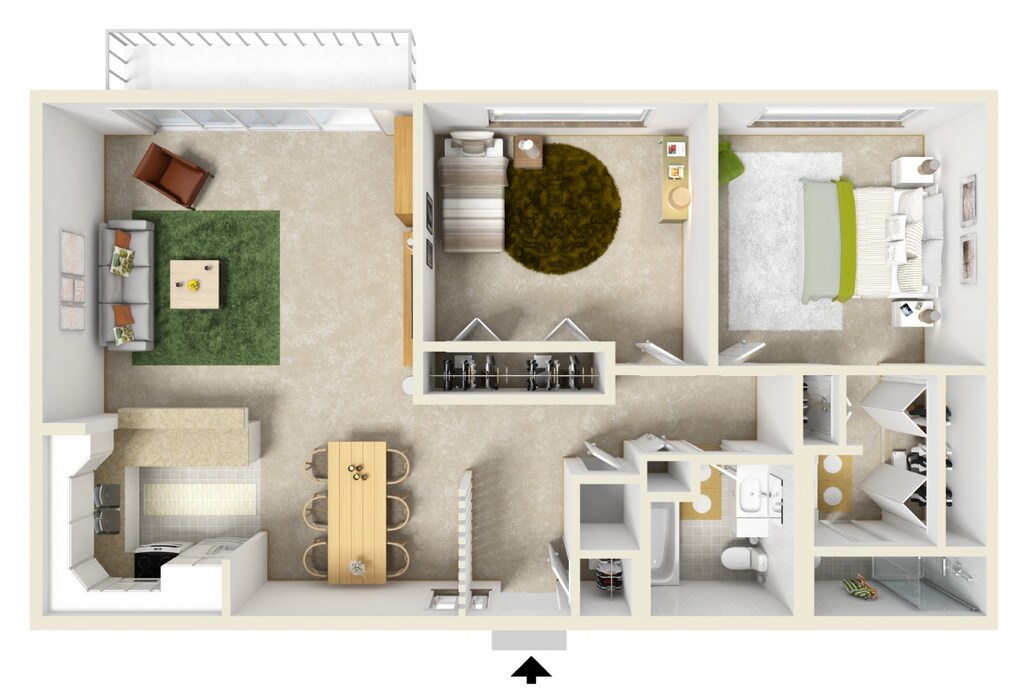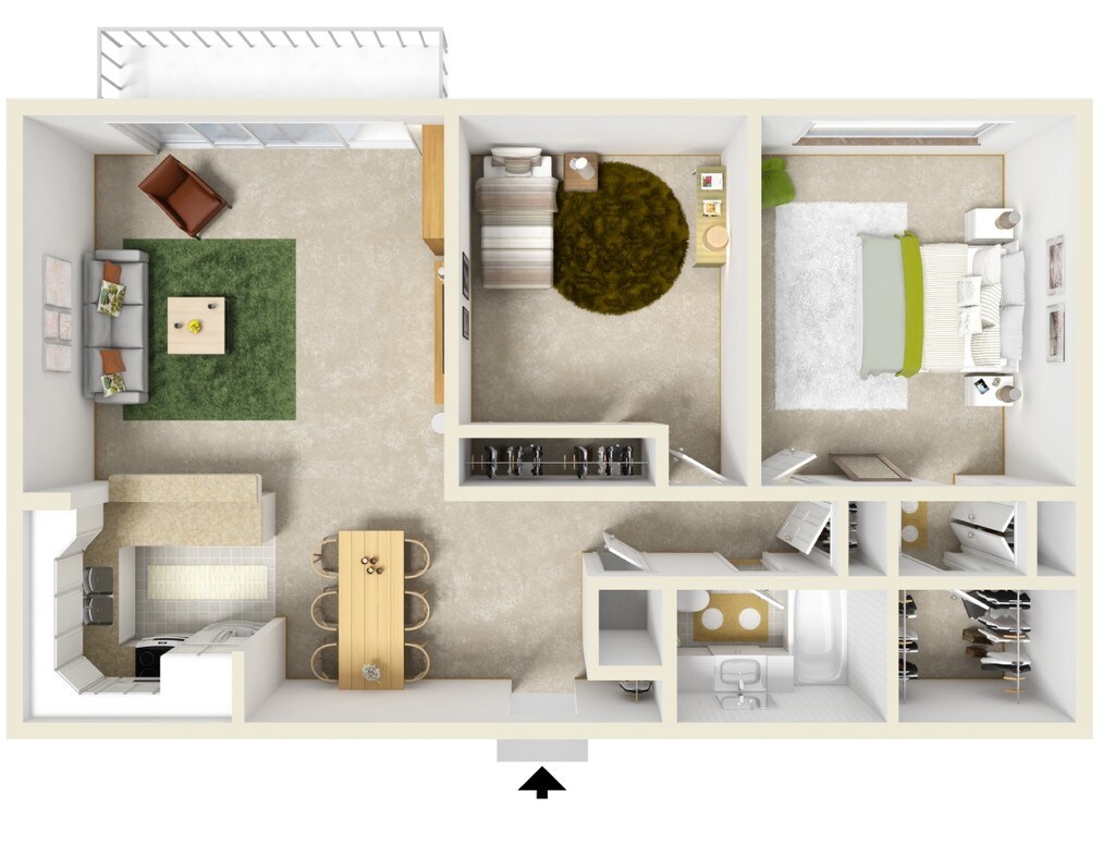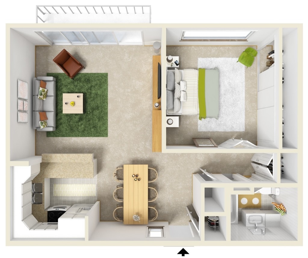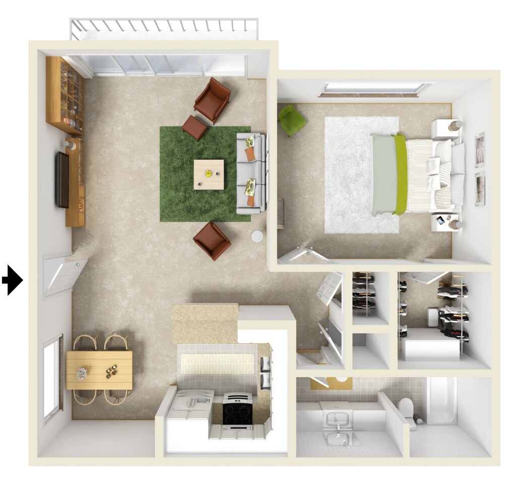 1 Bedroom 1 Bath Apartment Home with 716 Sq. Ft... - Floorplan 8 1 Bedroom 1 Bath Apartment with Creekside/Pool ...