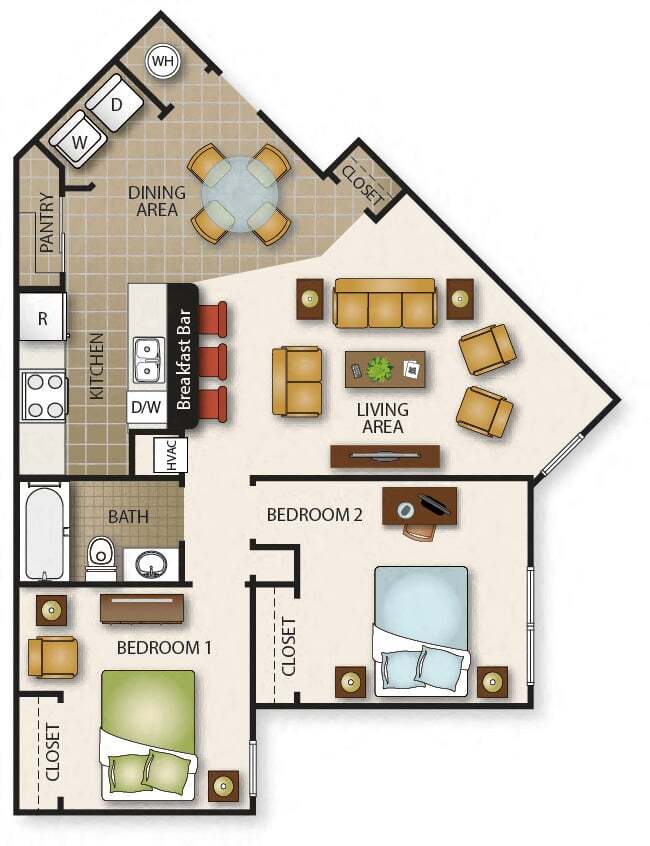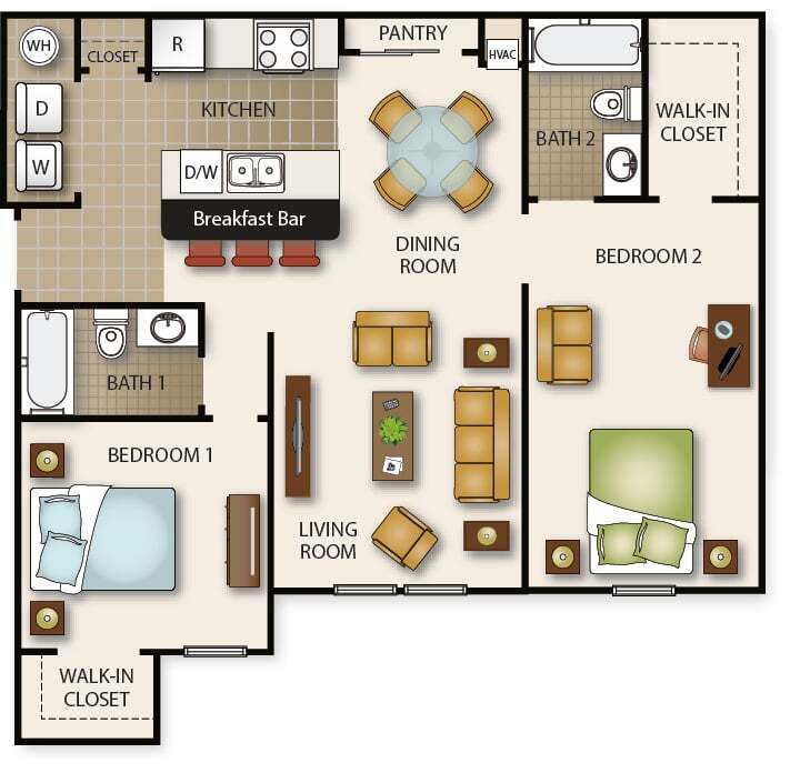 Apartment Model: Two Bedroom Two BathFrom $1,3782 Bedroom, 2 Bath, 928 sq ftAvailable Now![]()