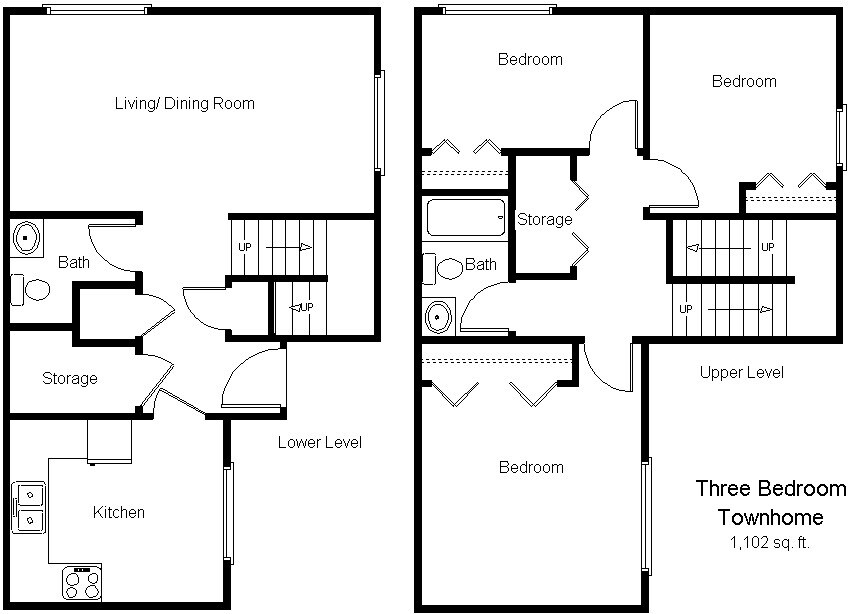 Apartment Model: Three Bedroom Townhome3 Bedroom, 1.5 Bath, 1102 sq ftAvailable NowThree Bedroom Townhome - Floorplan 1 Three Bedroom Townhome - Floorplan 2 Apartment Unit: 2B2Apartment Model: Three Bedroom Townhome3 Bedroom, 1.5 Bath, 1102 sq ftAvailable Now