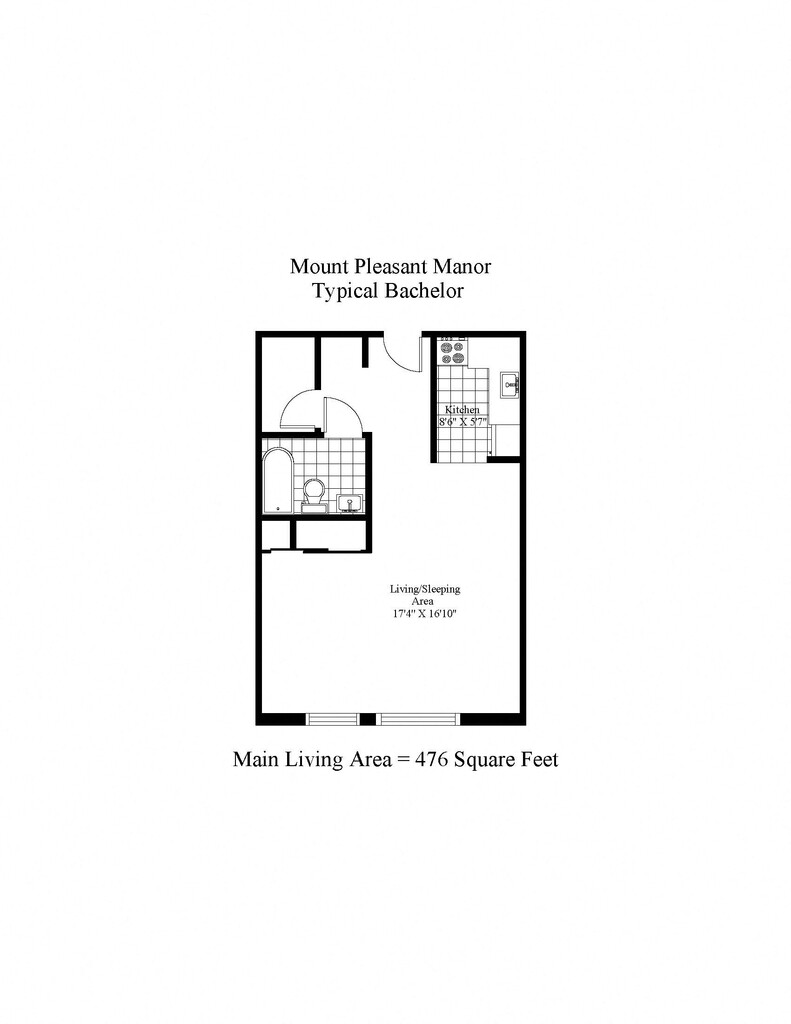 Apartment Model: BachelorStudio, 476 sq ftUnavailableBachelor - Floorplan 1 1 Bedroom
