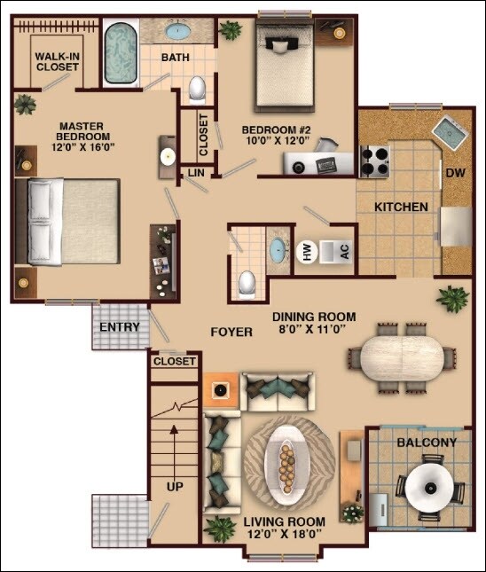 2 Beds, 1 Bath, 802 sq ftModel Gallery