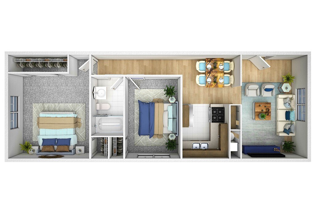 2 Beds, 1 Bath, 639-689 sq ftAvailable NowModel Gallery