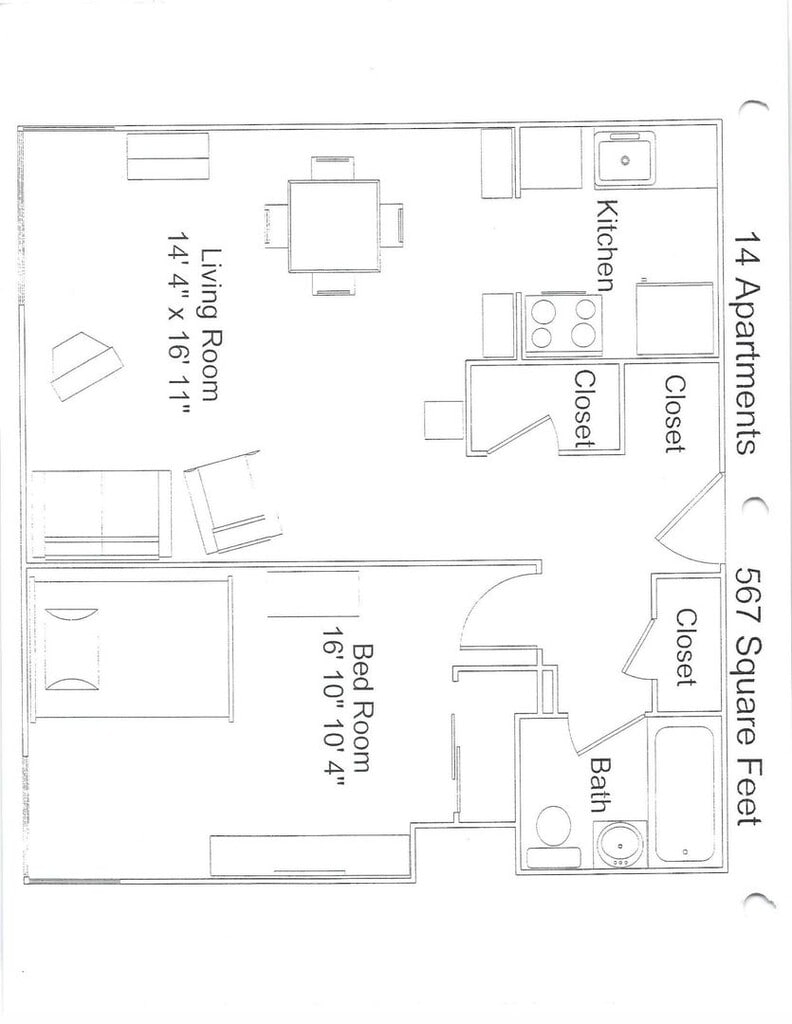 Efficiency / 1 Bathroom - (5th and 6th Floor) - Floorplan 1 Apartment Unit: 601Apartment Model: Efficiency / 1 Bathroom - (5th and 6th Floor)$1,075Studio, 1 Bath, 414 sq ftAvailable December 15, 20251 Bedroom