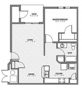 1 Bed, 1 Bath, 729 sq ftModel Gallery