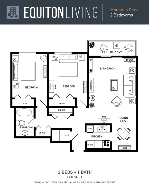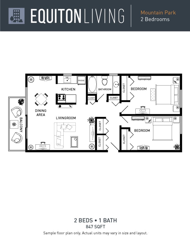 2 Beds, 1 Bath, 847 sq ftAvailable NowModel Gallery