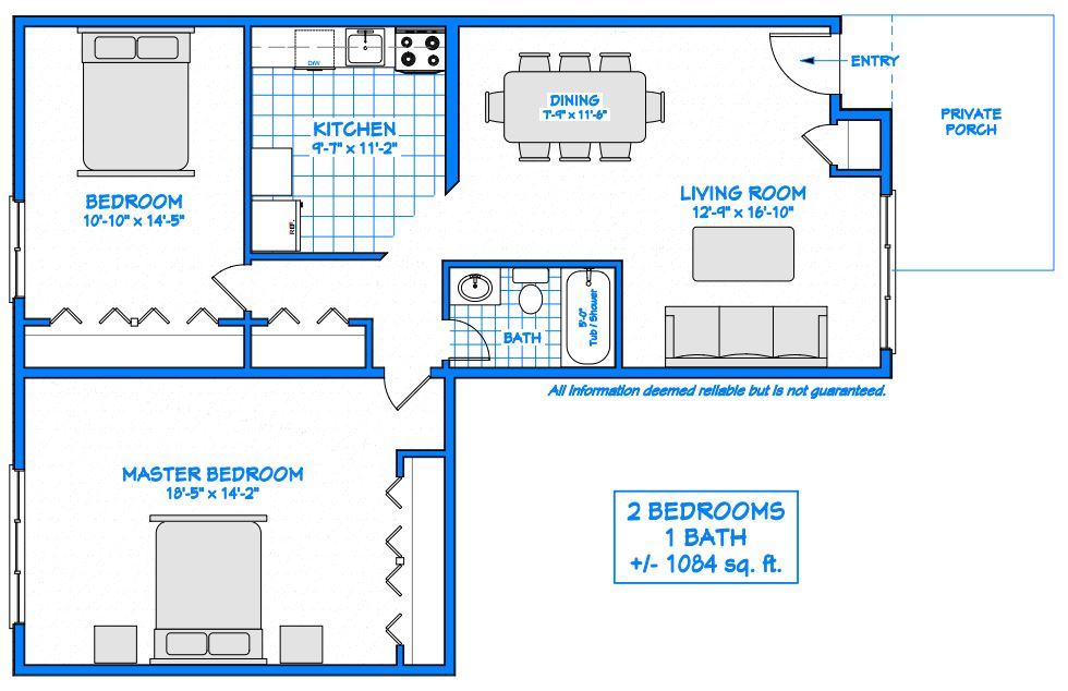 2 Beds, 1 Bath, 1084 sq ftModel Gallery