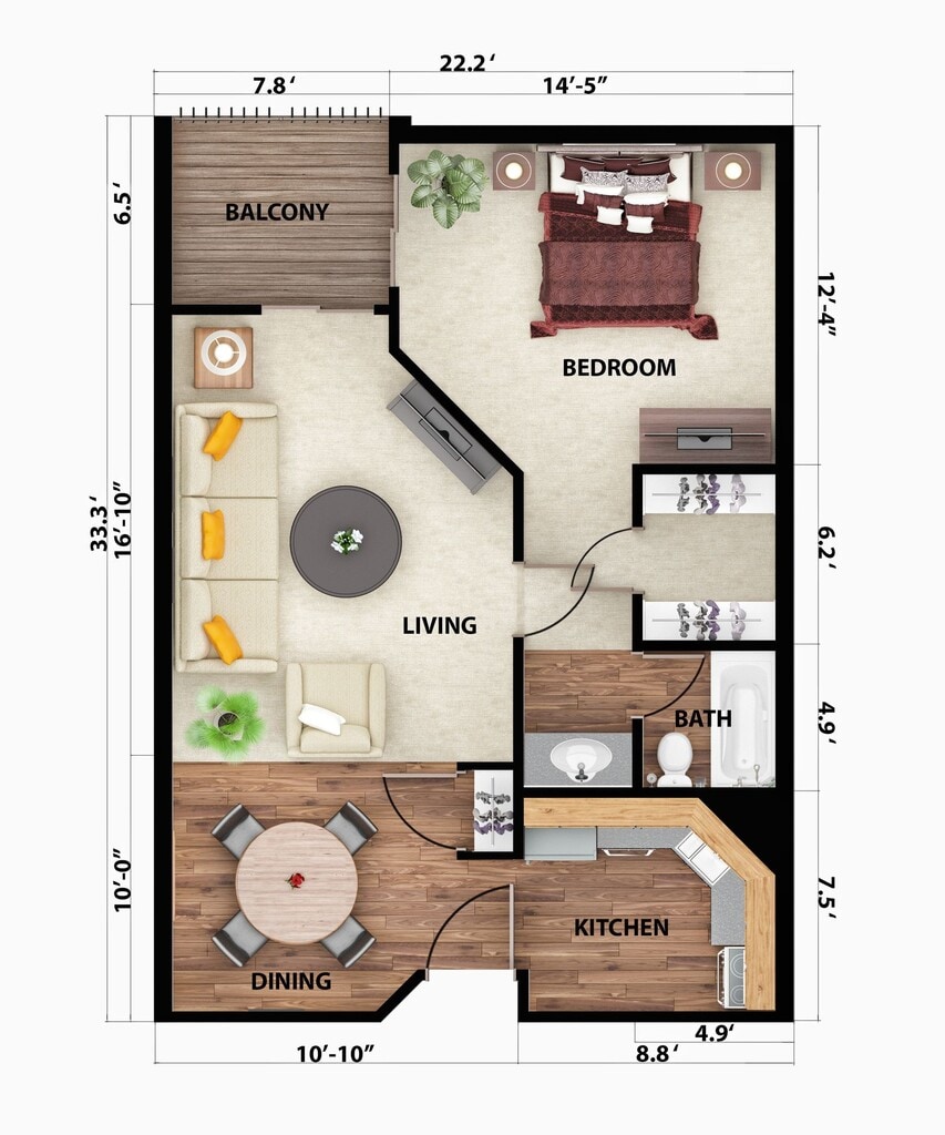 1 Bed, 1 Bath, 752 sq ftAvailable NowModel Gallery