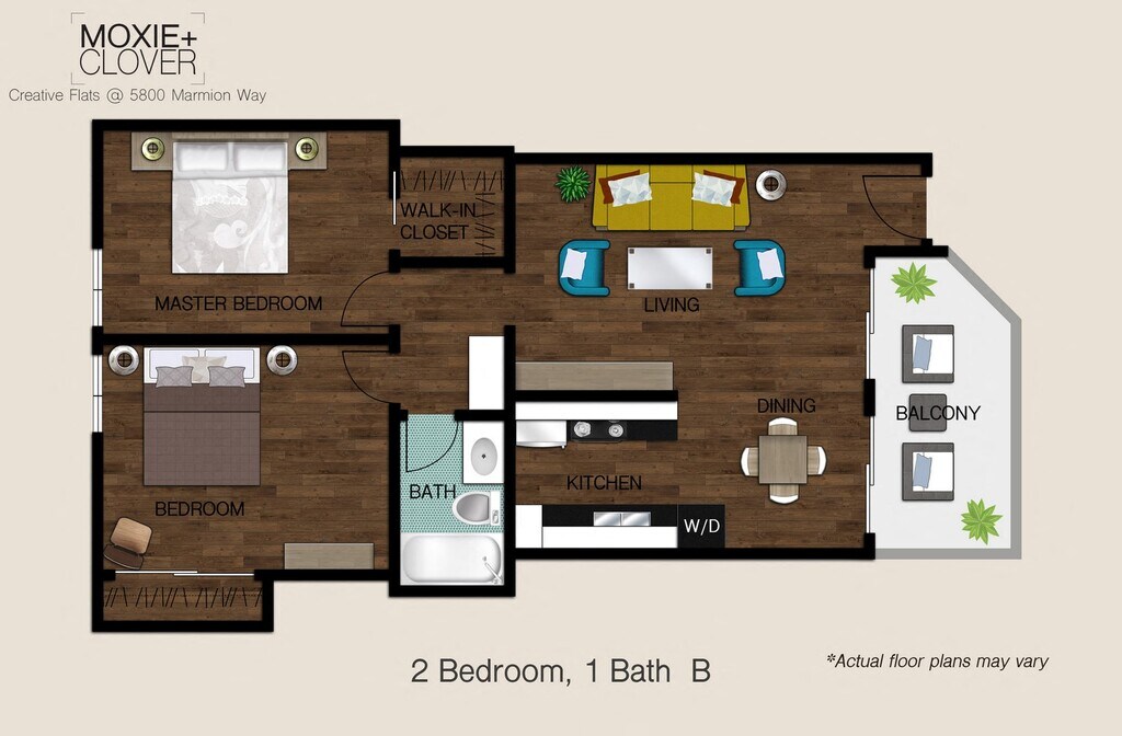 2 Bedrooms at Moxie + Clover currently start from $2,850. Call today for more info!