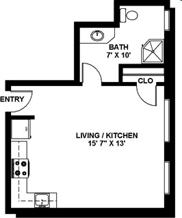 Studio, 1 Bath, 268 sq ftAvailability Details