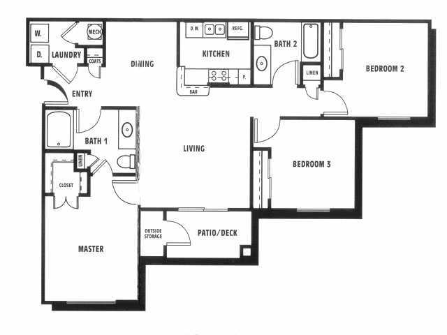 Apartment Model: Three Bedroom3 Bedroom, 2 Bath, 1280 sq ftAvailable January 1, 2026![]()