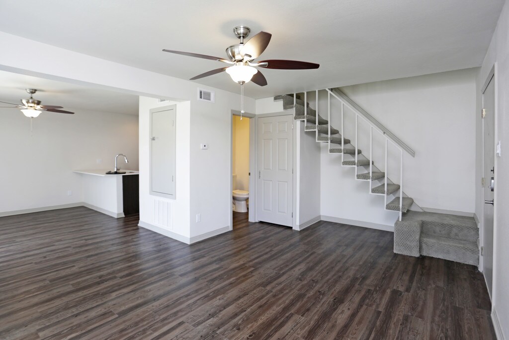 - Wood style flooring throughout
