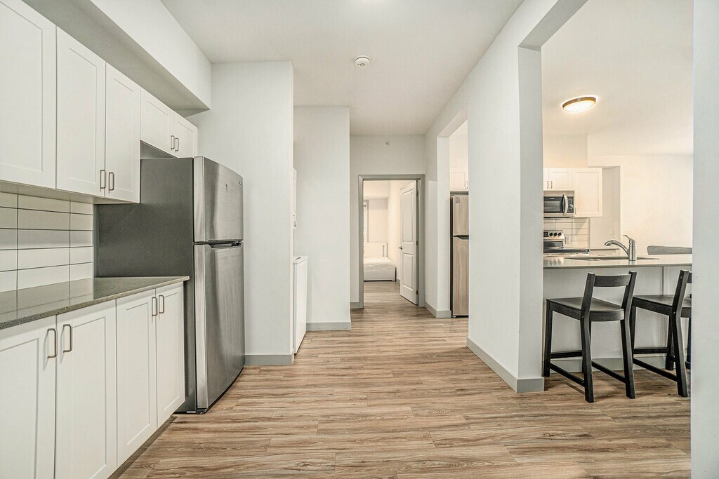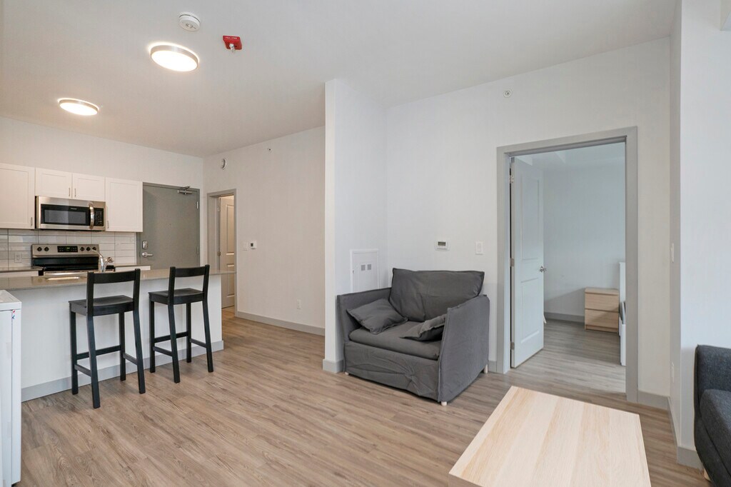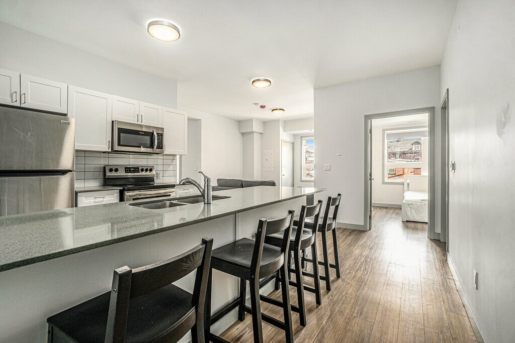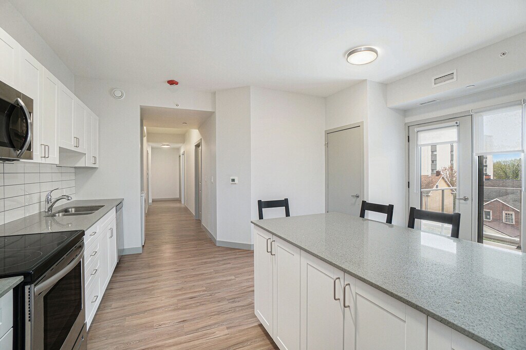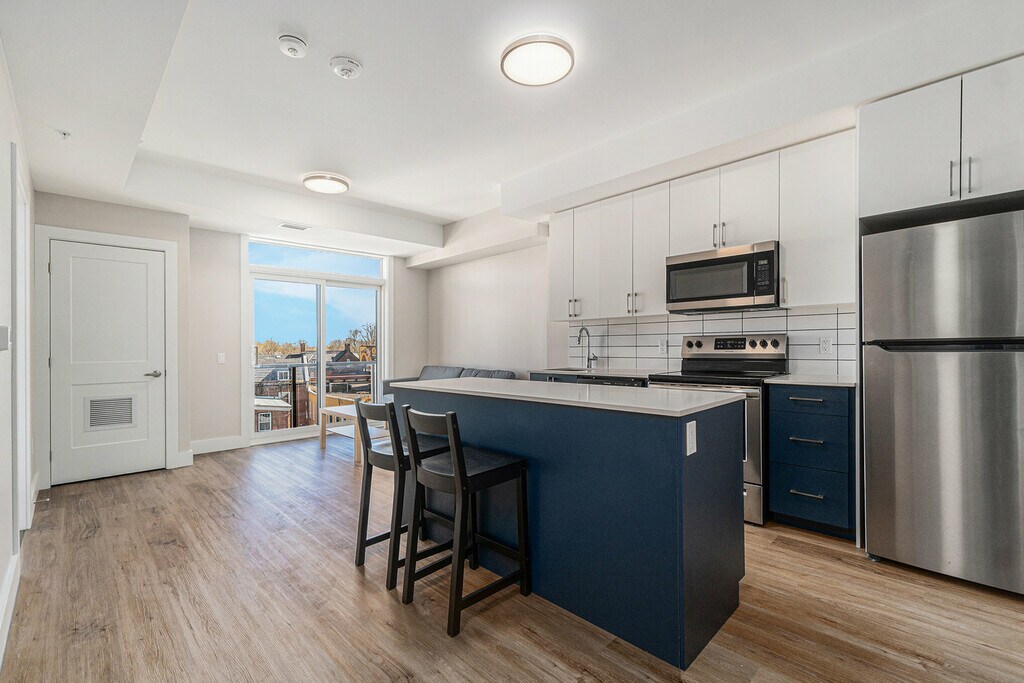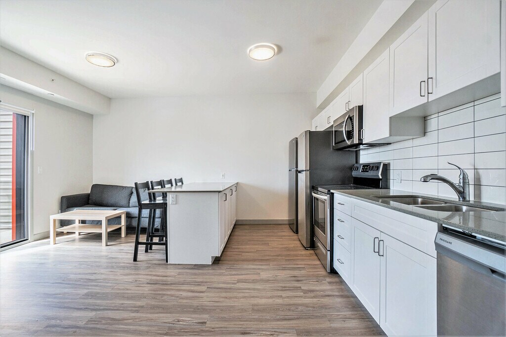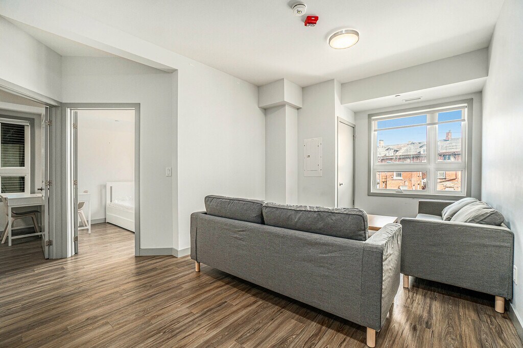 Mural Kingston - 5 Minutes to Campus! Welcome to Mural Kingston, where style meets convenience, and tenants enjoy living in the heart of downtown and just a stone’s throw from campus. Our modern and well-equipped apartment building is just a 4-minute stroll to campus. The property is professionally managed by Mural Kingston, ensuring a smooth and hassle-free living experience. Featuring a gym, study spaces and furnished rooftop terraces, the building also offers optional parking, high-speed Wi-Fi included in rent, as well as bright and spacious furnished apartments.
