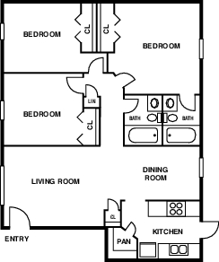 2 Beds 2 Baths - Floorplan 1 3 Bedrooms