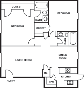 1 Bed 1 Bath - Floorplan 2 2 Bedrooms