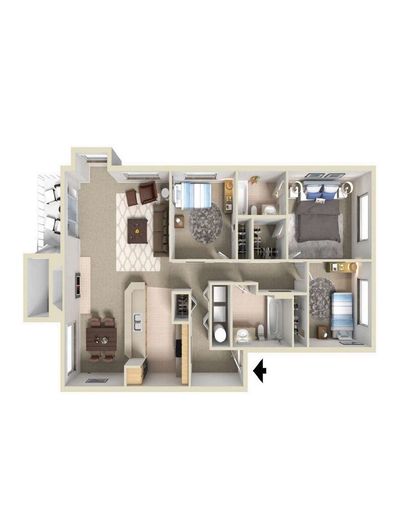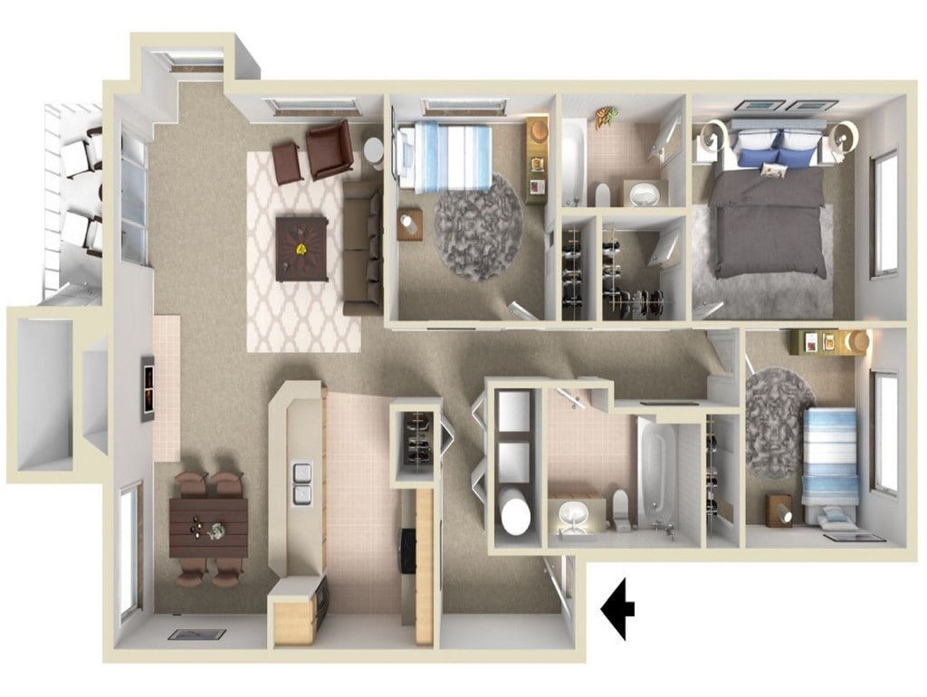 3 Beds, 2 Baths, 1106 sq ftModel Gallery