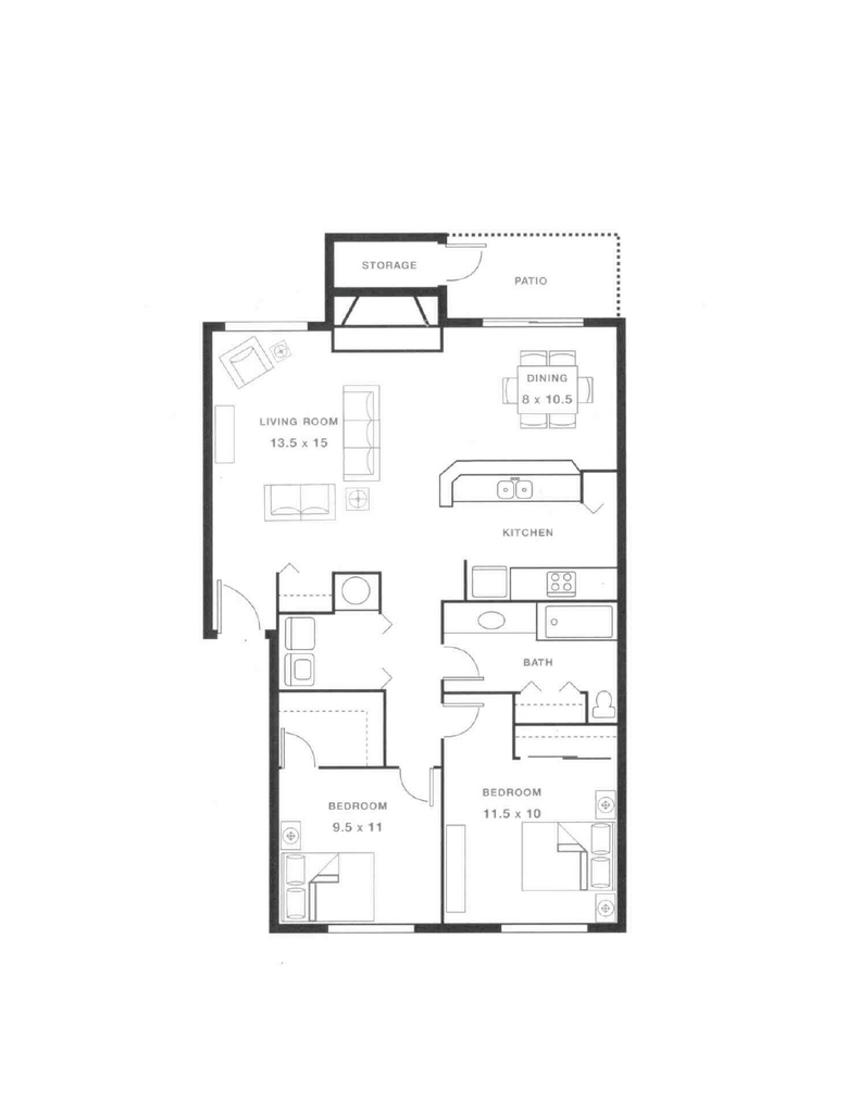 Two Bedroom One Bath - Floorplan 3 3 Bedrooms