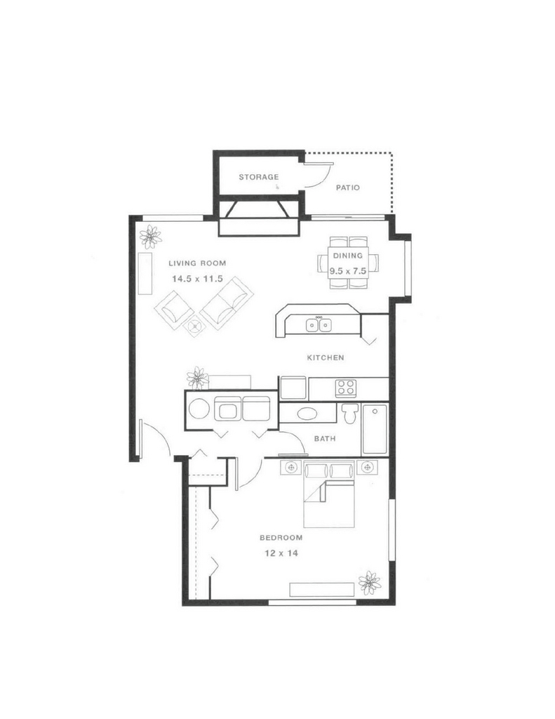 One Bedroom One Bath - Floorplan 1 ![]()