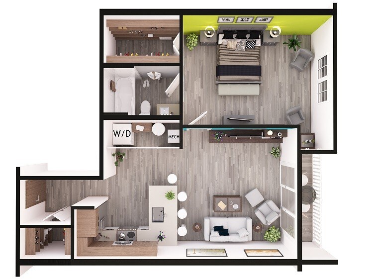1 Bed, 1 Bath, 764 sq ftModel Gallery