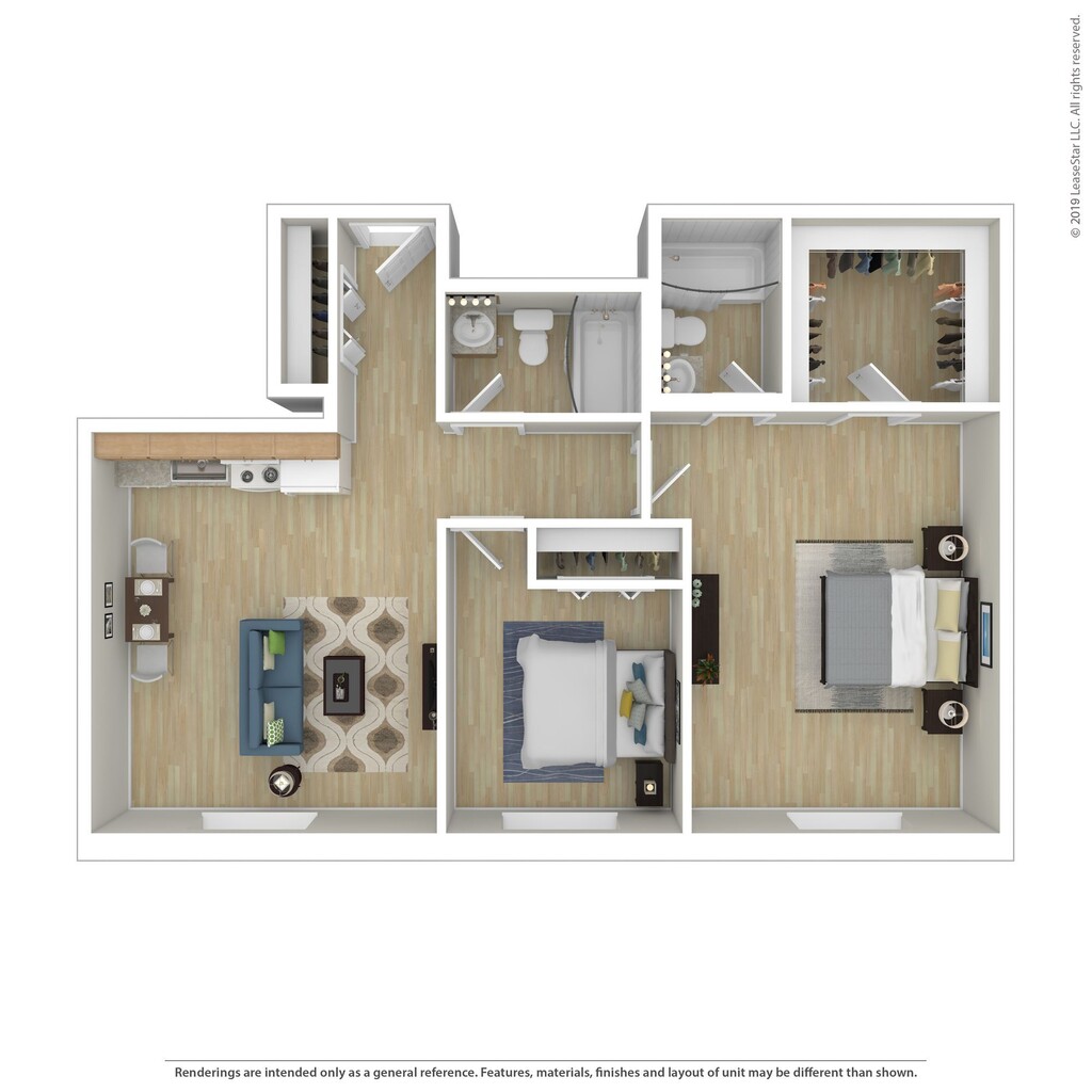 2 Bedroom - Floorplan 2 Apartment Unit: 1-327Apartment Model: 2 Bedroom2 Bedroom, 2 Bath, 945 sq ftAvailable Now