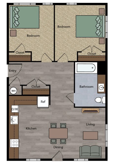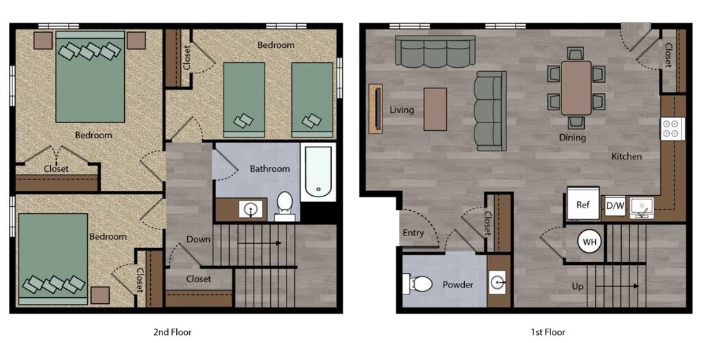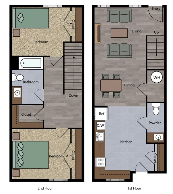 2 Beds, 1.5 Baths, 1070 sq ftLargest 2 BedroomThis is the largest 2 Bedroom at this PropertyModel Gallery