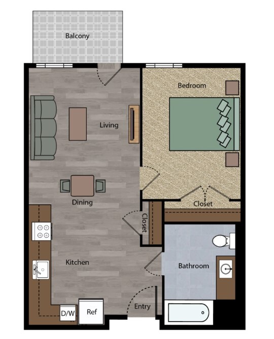 1 Bed, 1 Bath, 534 sq ftModel Gallery