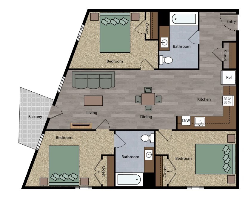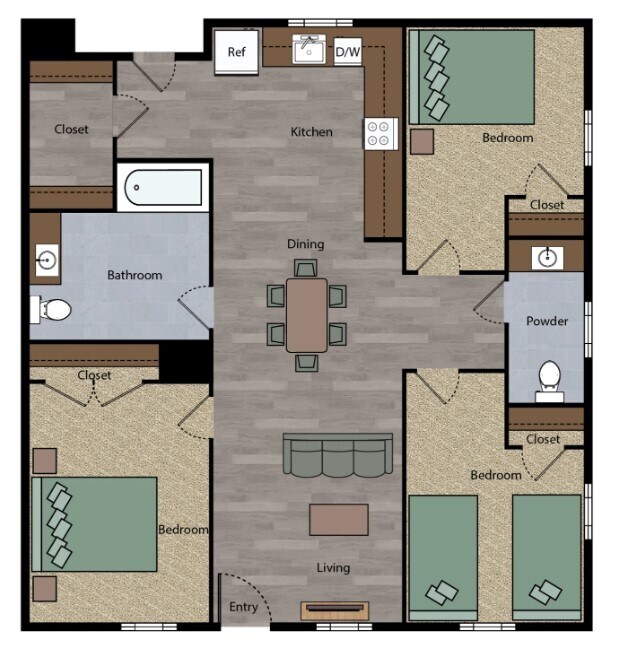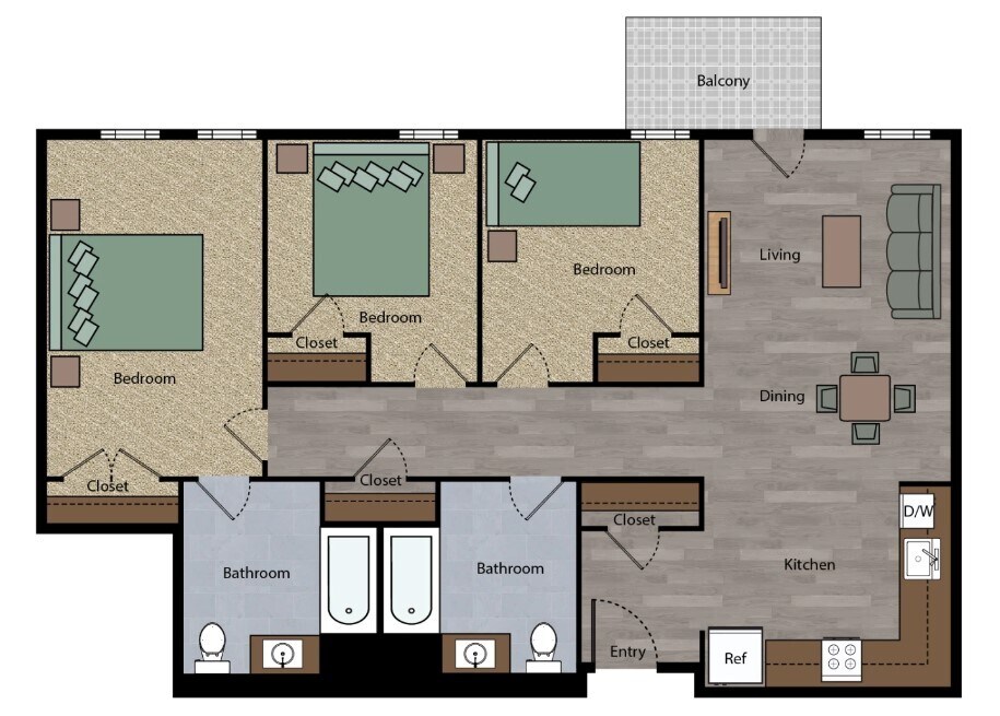 3 Beds, 2 Baths, 992 sq ftModel Gallery