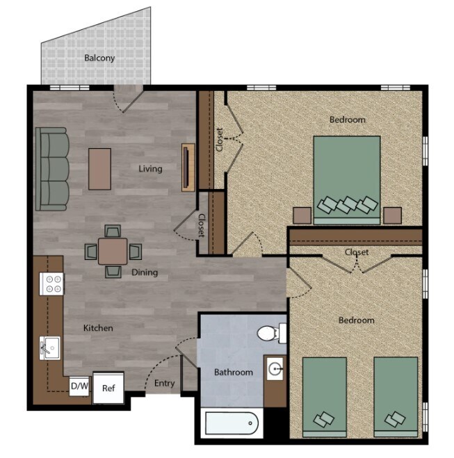 2 Beds, 1 Bath, 868 sq ftModel Gallery