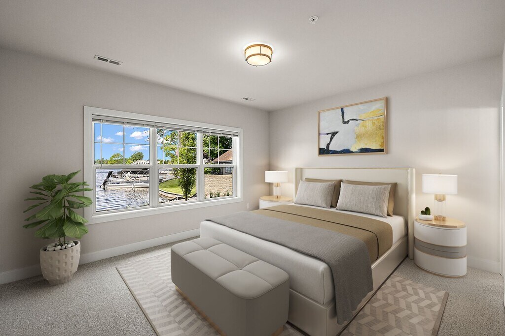Discover effortless lakefront living in The Bellevue Ranch, a beautifully designed two-bedroom home that blends coastal cottage charm with modern luxury—nestled along the tranquil shores of all-sports Lake Orion. Wake up to breathtaking lakefront views from the primary suite, where sunlight sparkles across the water and mornings begin with serenity. With a private entrance, garden-level design, and a cozy courtyard off the second bedroom, this home is a peaceful escape where your home feels like a vacation. Step outside to your private patio and enjoy the convenience of your own individual boat slip just steps away. Inside, the spacious open layout features quartz countertops, a designer kitchen with stainless steel appliances, and a full-size washer and dryer. Generously sized bedrooms, large closets, and a stylish primary ensuite bath offer both comfort and sophistication, all wrapped in a soft, coastal-inspired finish. A spacious two-car attached garage offers everyday convenience, while the charming Village of Lake Orion invites you to explore its walkable downtown, lively waterfront, and welcoming local community. The Bellevue Ranch is your gateway to elevated lakefront living.
