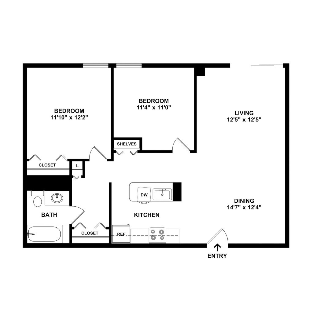 Apartment Model: 1 Bedroom H$2,3451 Bedroom, 1 Bath, 620 sq ftAvailable NowFloorplansPhotos![]()