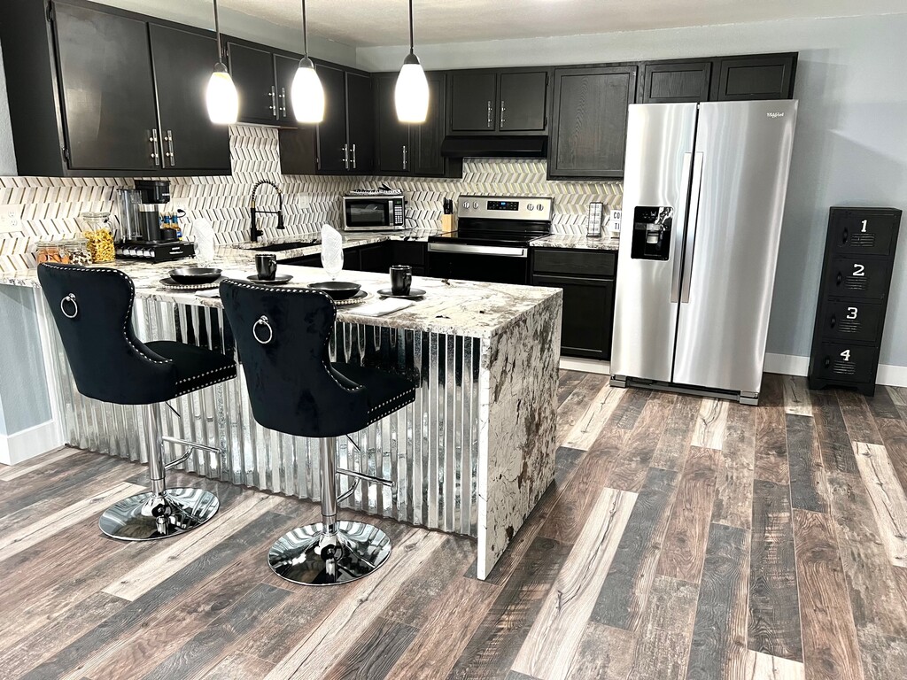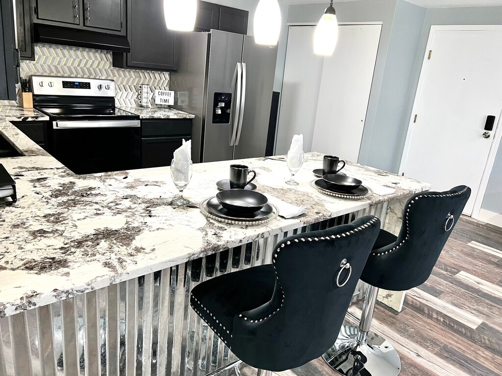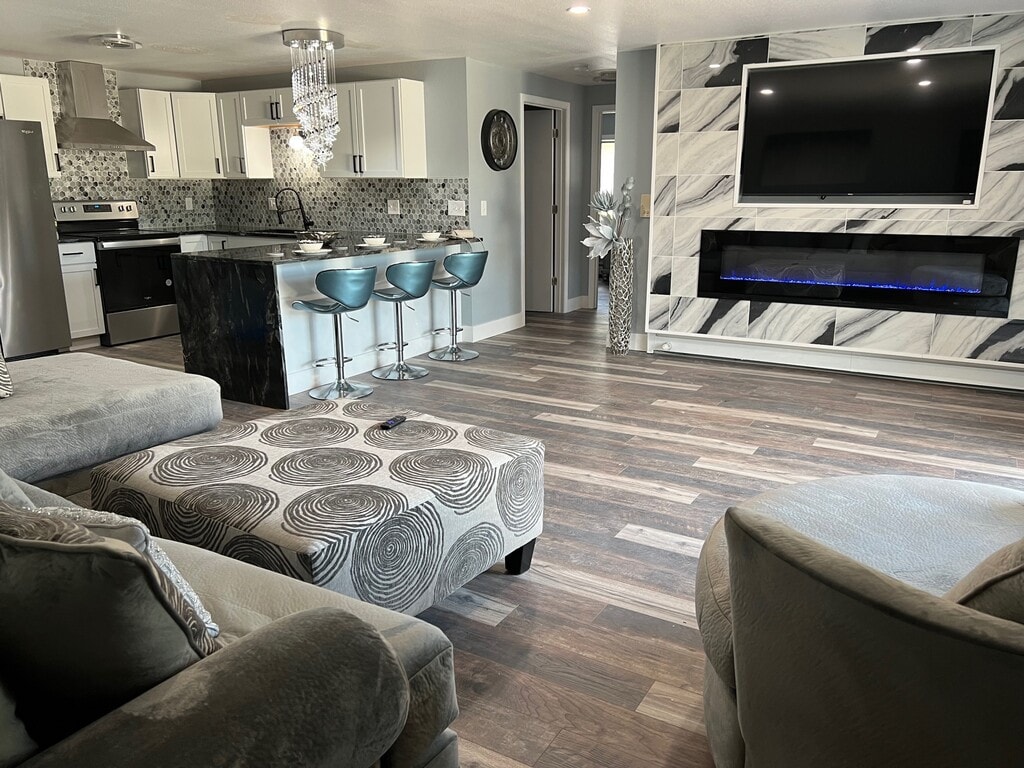 The Residences of Kensington are the crown jewel in our array of housing offerings. 16 units in total, each has two-bedroom one bath units feature a waterfall granite island with four designer stools, a large executive built in modern fireplace with 65" built in television, and a full stainless steel high-end appliance upgrade. Each unit also comes with a garage, not attached, and free laundry access in the building (not in the individual units). In addition to the garage there is a second parking space available for each apartment. Please note: Pricing is for 12 months term lease or longer. For short term stays, please don't hesitate to reach out!