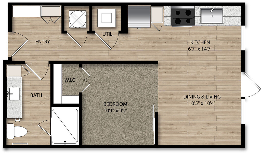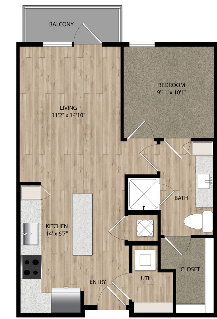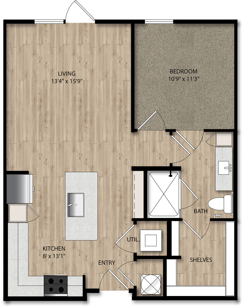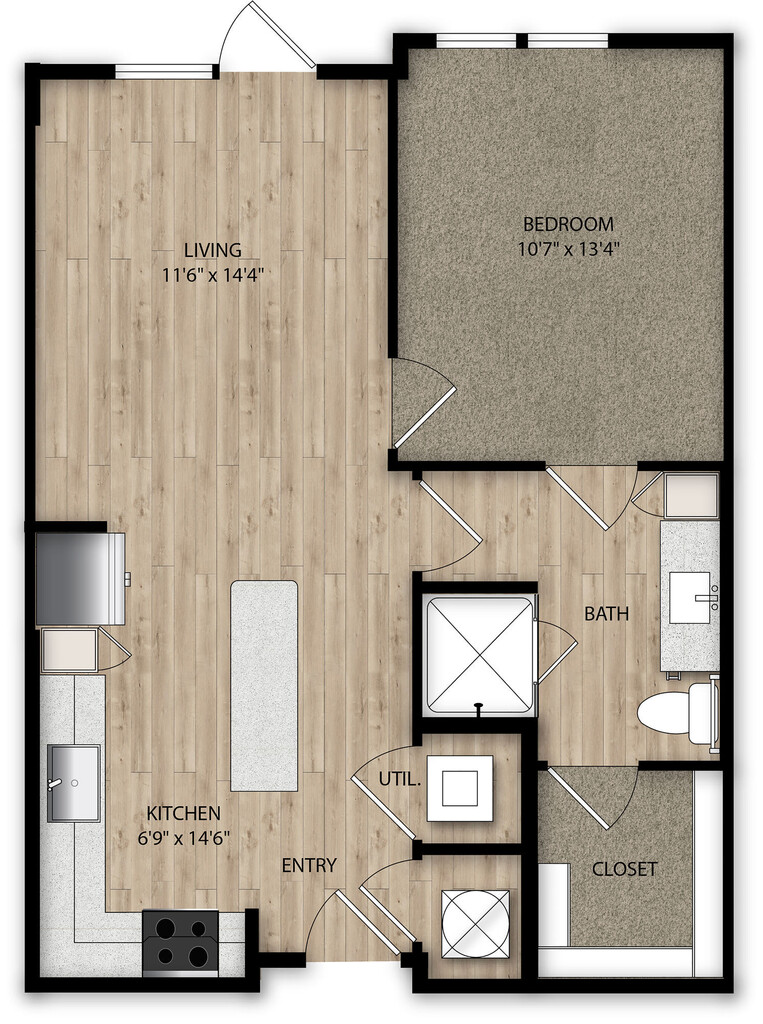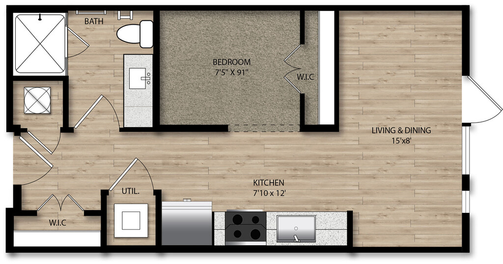 Studio, 1 Bath, 540-556 sq ftAvailable NowModel Gallery