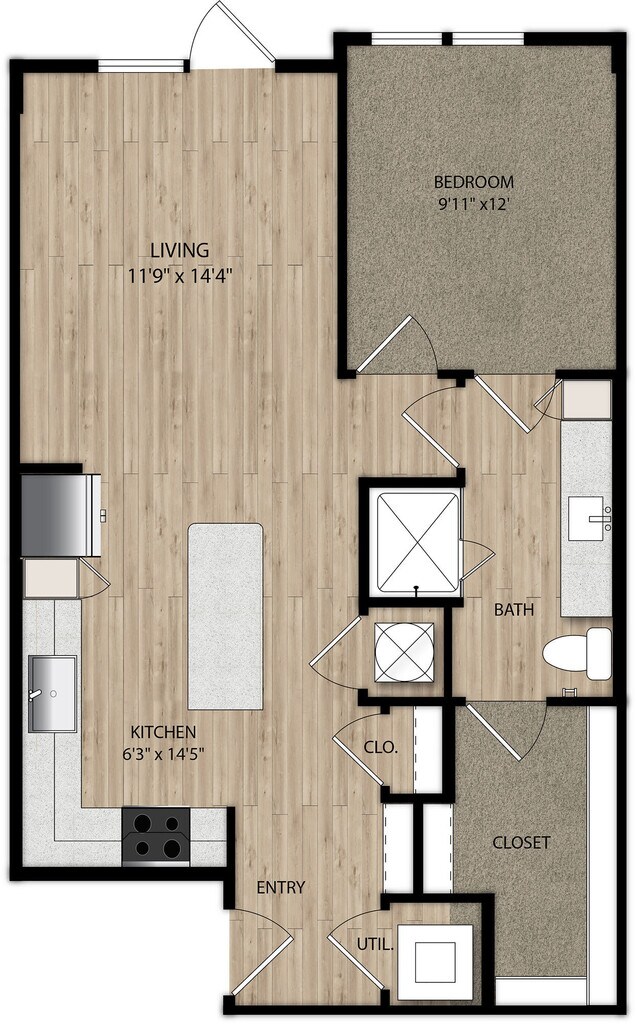Apartment Model: E1$1,711Studio, 1 Bath, 480 sq ftAvailable NowFloor plans are artist's rendering. All dimensions are approximate. Actual product and specifications may vary in dimension or detail. Not all features are available in every rental home. Please see a representative for details.