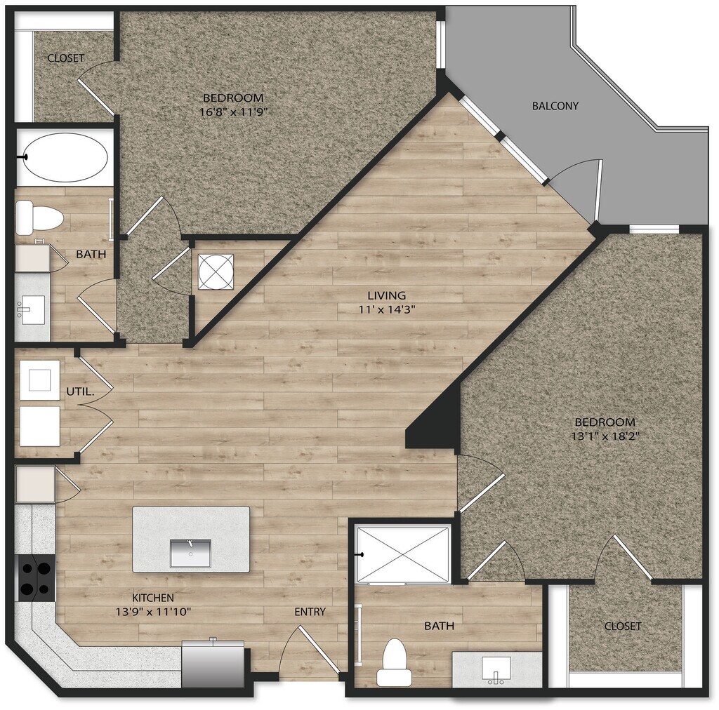 1 Bed, 1 Bath, 670-699 sq ftAvailable NowModel Gallery