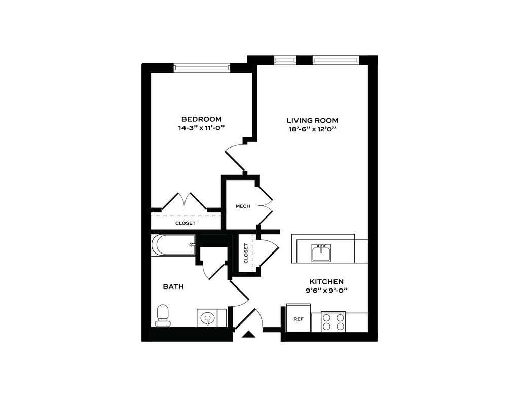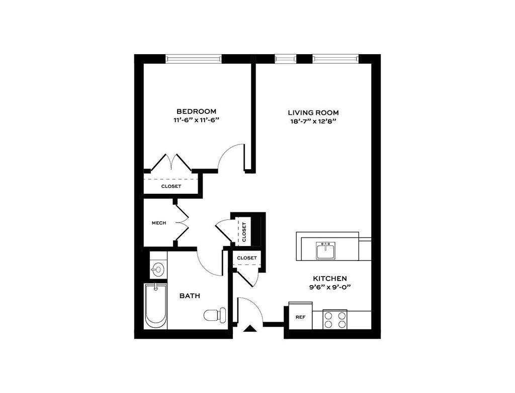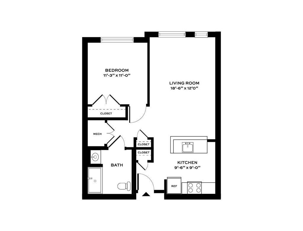 1 Bedroom 1 Bath - Floorplan 2 ![]()