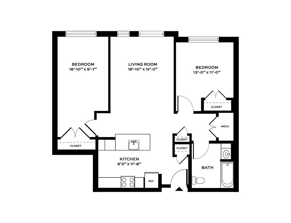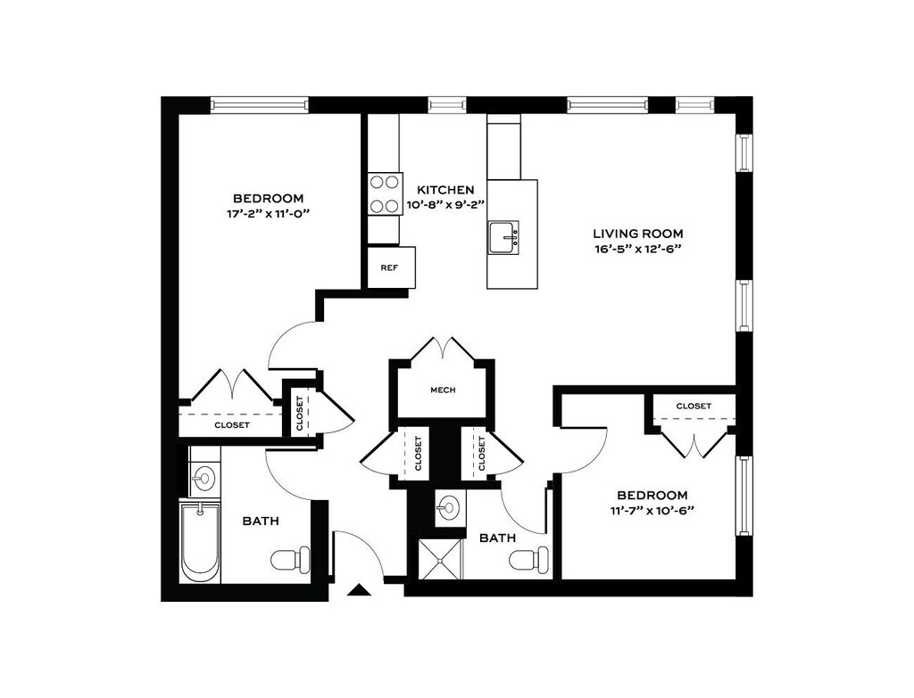 1 Bedroom 1 Bath - Floorplan 6 2 Bedrooms