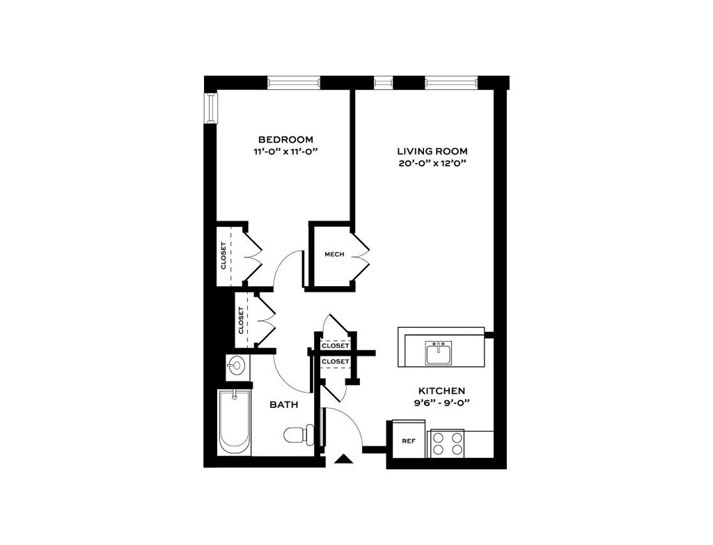 1 Bedroom 1 Bath - Floorplan 3 ![]()