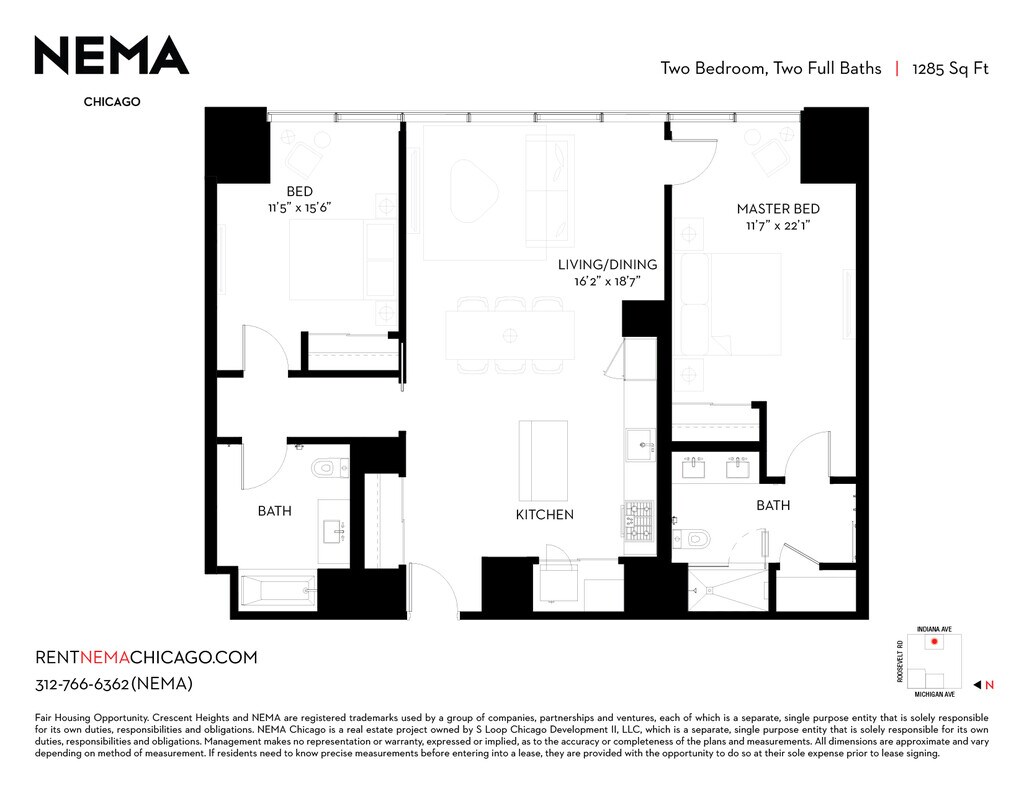 NEMA Chicago is located at 1210 S Indiana Ave near the Grant Park area of Chicago, IL